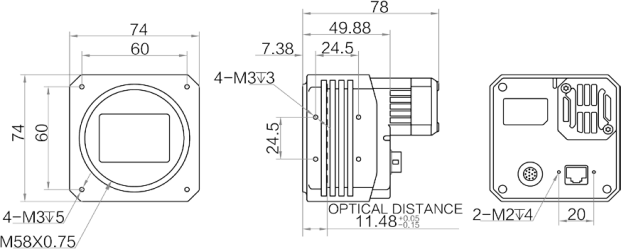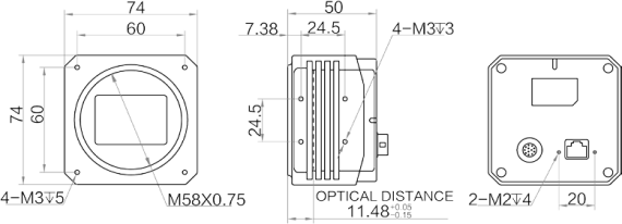 或 M58*0.75,光学后焦 11.48mm |
