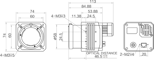 M58*0.75,光学后焦 11.48mm 可通过转接环转接至 C 口、F 口 |