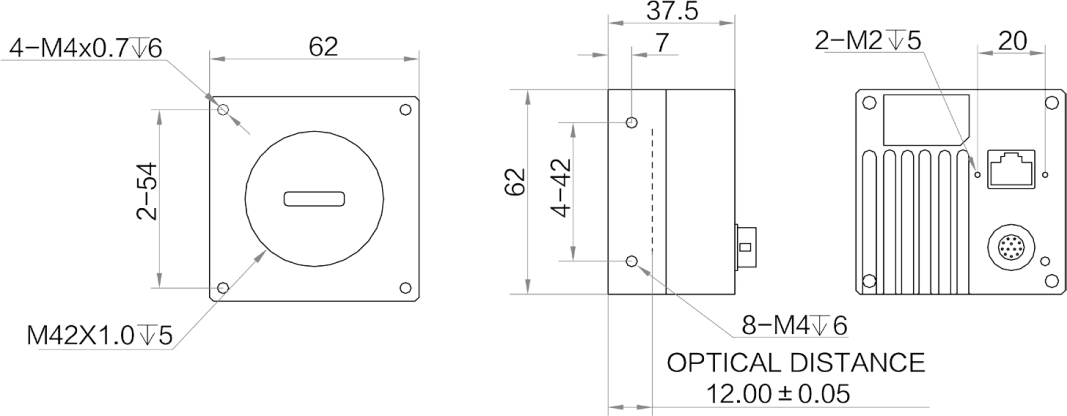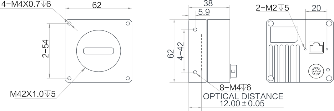 φ42,M2.5*3,光学后焦 10.3mm 螺钉固定 |