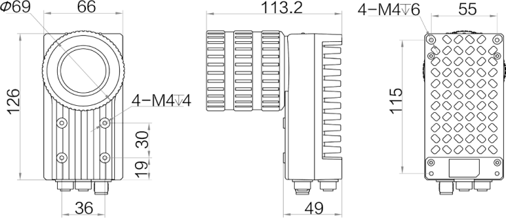 MV-SI6*2-00GM 及 MV-SI6*2-30GM:126mm*66mm*60.5mm MV-SI6*2-01GM 及 MV-SI6*2-31GM:126mm*66mm*113.2mm |
